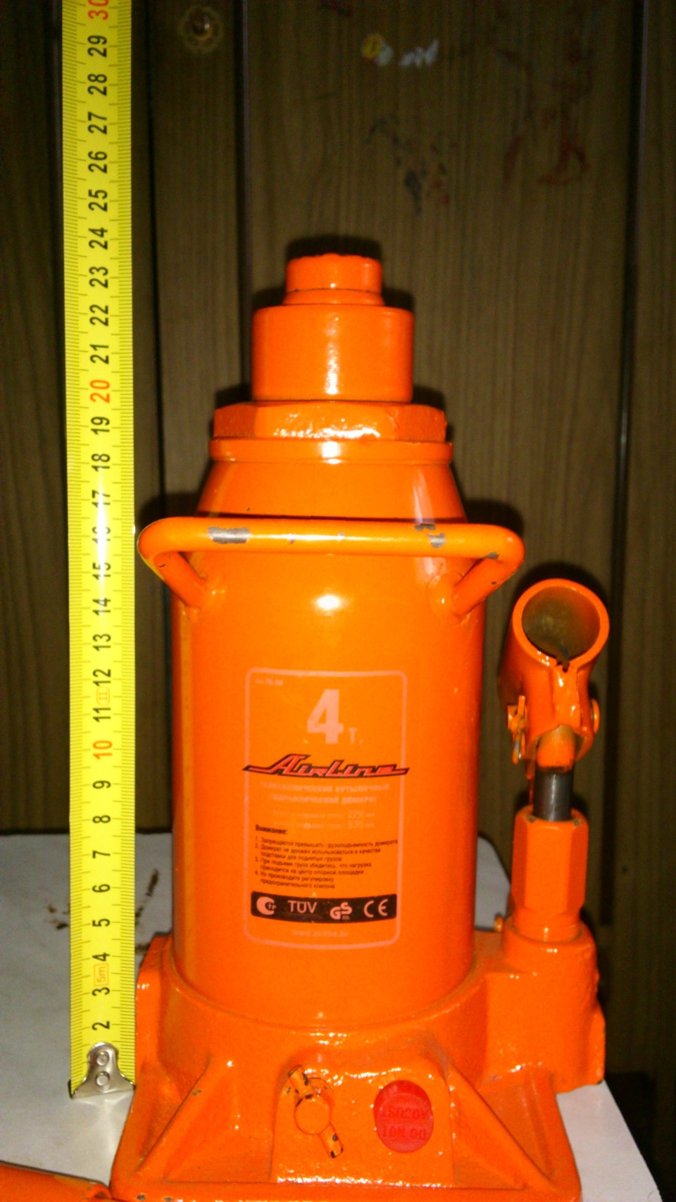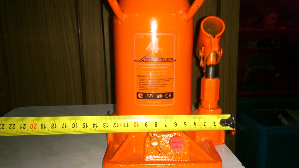 Всем доброго дня. Давно задумывался о покупке домкрата, который бы поднимал автомобиль без всяких подкладок, дощечек и т.д. и т.п. Прочитав статью www.drive2.ru/l/7929287/, решил остановиться на покупке этого домкрата "Airline AJ-TB-04". Выкладываю его размеры, может кому будет интересно.