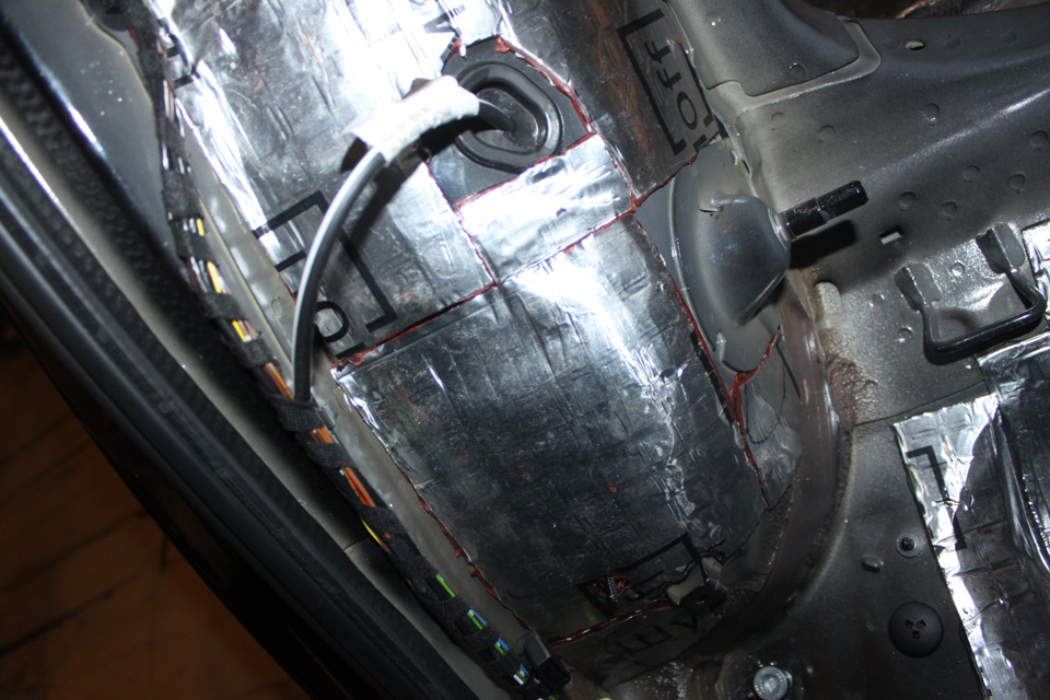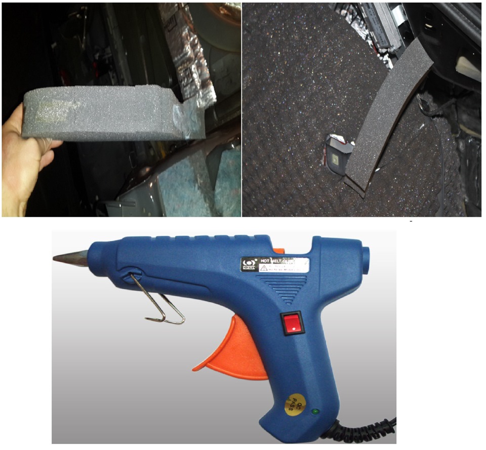 "Губку" от штатной шумоизоляции, снимать обязательно, иначе нормально не проклеить арки, она приклеена в двух местах. Обратно приклеиваем с помощью термопистолета.