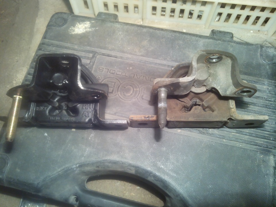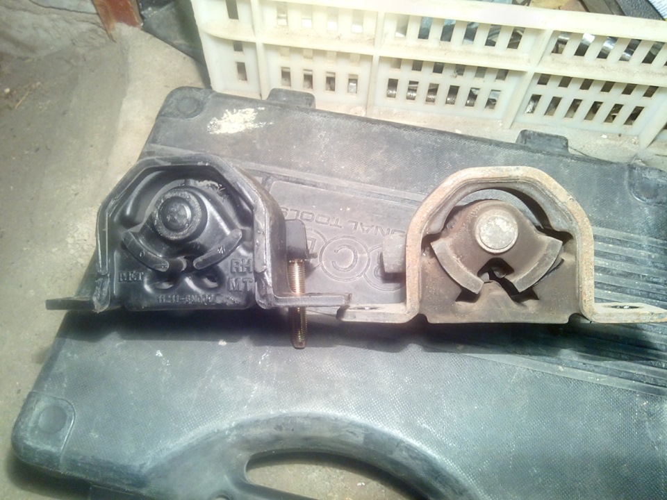 Задняя расслаиваться начала уже давно. Сейчас давно не залазил. Но появилась болтанка рычага кпп, которой раньше не было. Думаю, подушка в конец развалилась. Все это касательно задней. А правая пока целая!