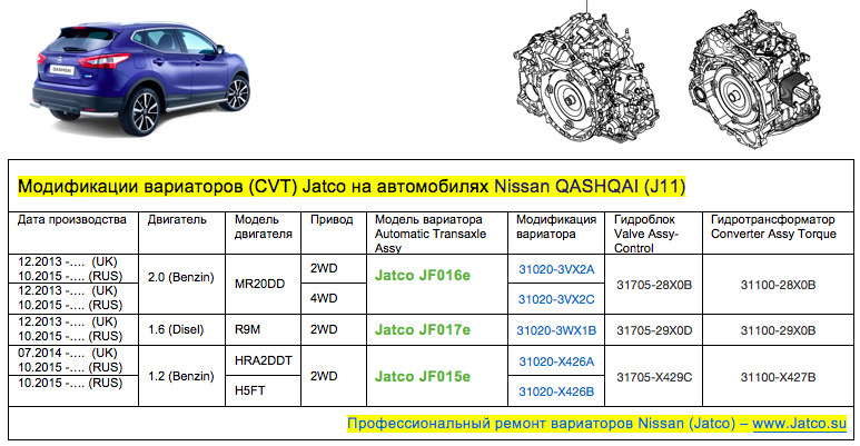 На второе(!) поколение Nissan Qashqai (J11) устанавливали 3(!) модели вариаторов: