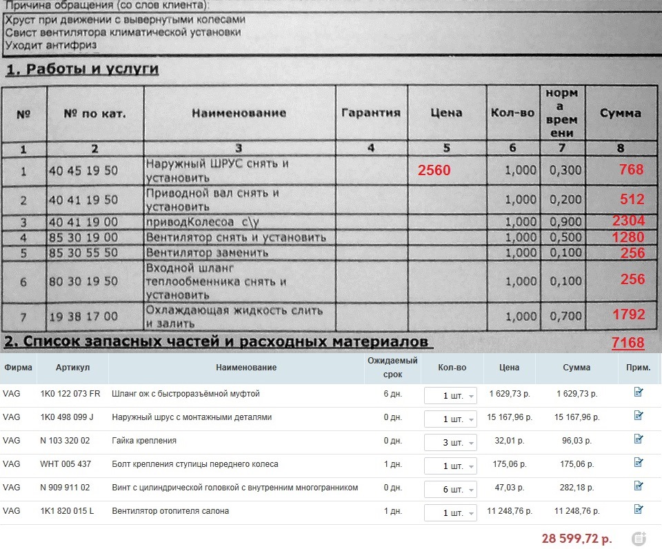 Контракт окончил действие 19 октября 2015 года, но дефектовку произвели 15 октября и подтвердили гарантийный случай по следующим позициям.