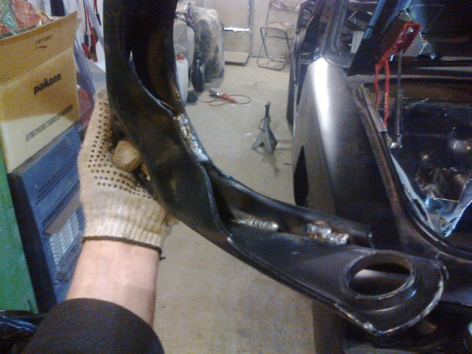 Для крепления аморта к верхнему рычгу использовали штатный кронштейн переднего амортизатора. Сами рычаги были взяты ВИС и на них проварили просто штатну сварку, больше никаких усилений.