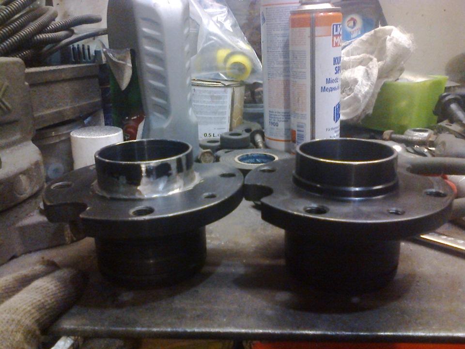Теперь ступицы… Еще год назад я купил задние ступицы 2108 от АСТ. Там стоит большой подшипник, а его обоймой служит сама ступица. Взял на авось, дай попробую… А тут не давно, листая какой то портал, увидел, что продается комплект от АСТ, таких ступиц на классику, все тоже самое, переходные втулки и ступицы))) Правда в моем случае пришлось болгаркой точить маленький бортик, который не давал сесть тормозному диску…