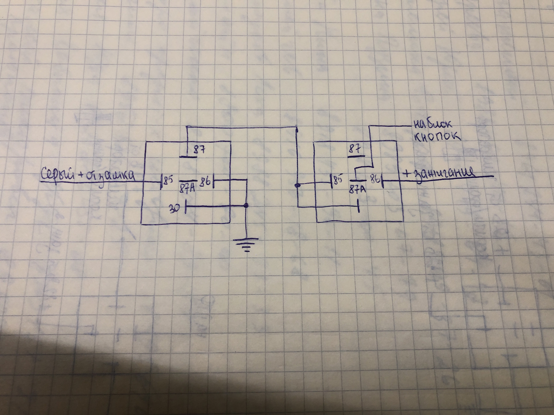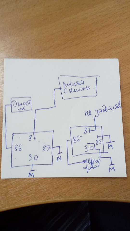 А по вашей схеме получается, что левое реле всегда будет в «работе» при включённом зажигании, что не есть хорошо…