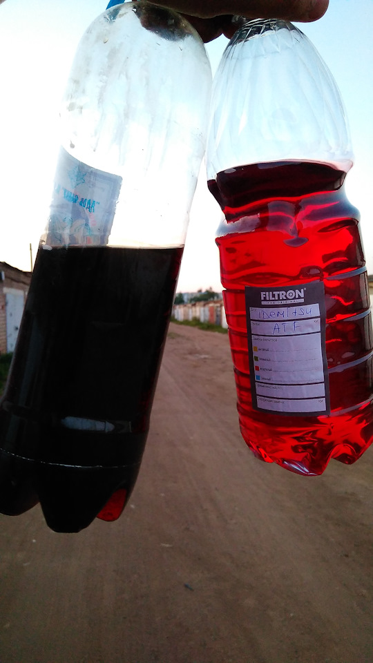 Спасибо за статью. Сделал все так же, но не вывешивал — нет двух домкратов, руль хоть и тяжело но крутится и так. В бачке было где то 300 гр. масла, плюс с обратки слилось при вращении руля, общий объем примерно 800 гр. Бачек не снимал — пробег 60 т.км — внутри чистый, толстый шланг (подача) соответственно тоже не снимал, только обратку. Цвет слитой жидкости — как на фото ниже, запах немного горелый. Заливал GM Декстрон-6, он же и был залит с завода, при пуске двигателя сразу сильно запенился, пошел треск, гул — думаю ну все, конец ГУРу, но это выходили пузырьки воздуха, система-то завоздушилась. Через несколько минут все нормализовалось, руль по ощущениям стал легче вращаться.
