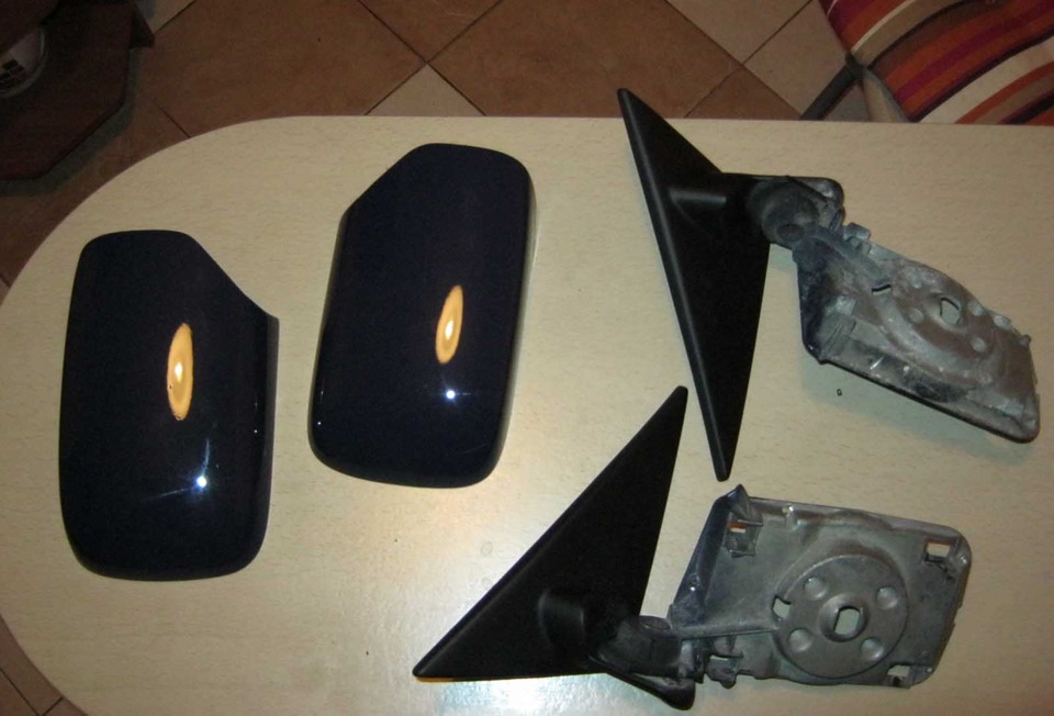 Если есть желание, значит нужно его исполнять, поэтому приобрел пару б.у. зеркал. Крышки естественно нужно красить в цвет кузова, поэтому решил разобрать полностью до винтиков. Так же решил обновить уголки, зеркал, подготовил к покраске крышки и уголки и отвез их к мастеру на покраску вместе с ранее приобретенным спойлером.