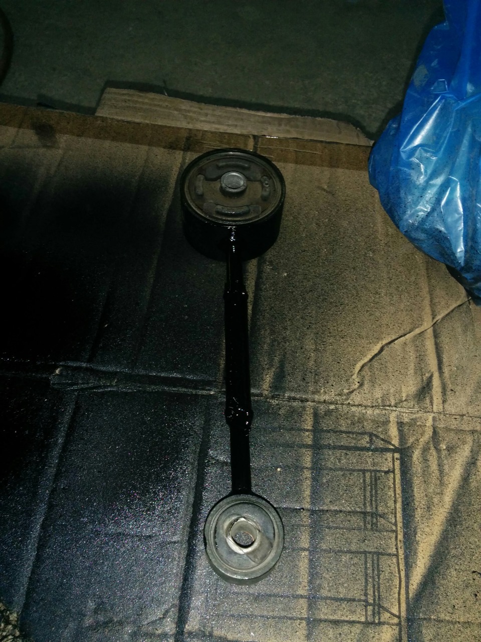 — Пришлось сделать хитрую проставку под большой сайлентблок передних рычагов.