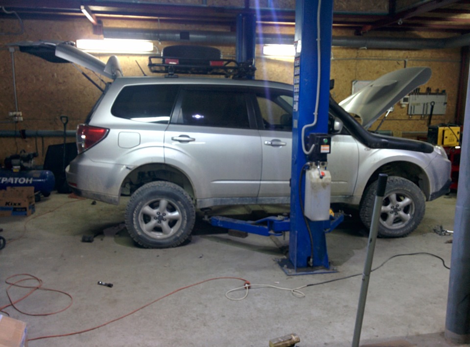 — Подушка двигателя на субарях вроде с 00 года пластмассовая, купил железную от СФ5 и удлинили её.