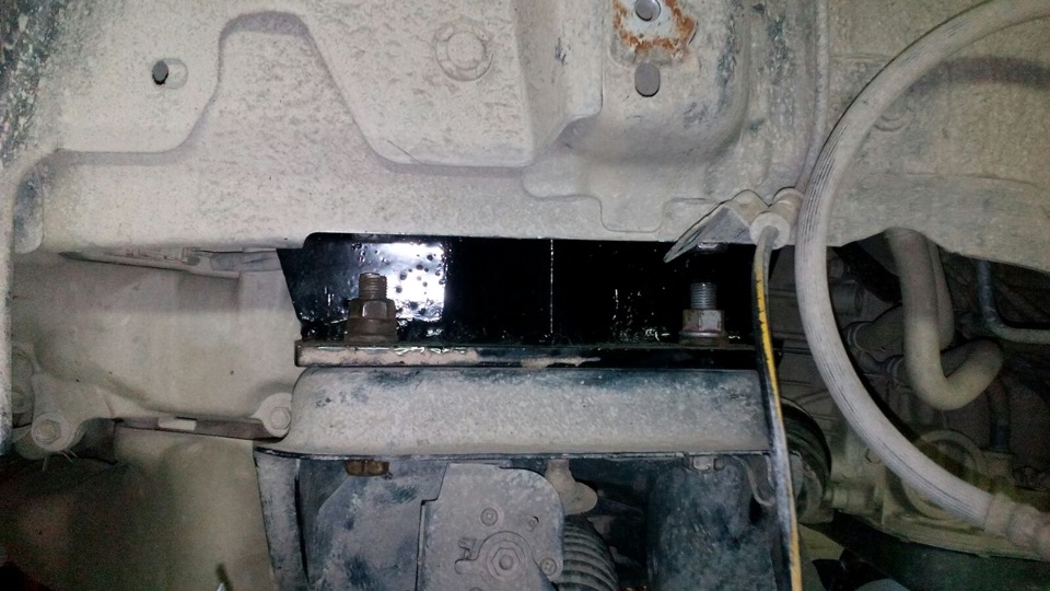 — Защиту двигателя немного подогнули, прорезали отверстия под болты задние, и она встала хорошо.