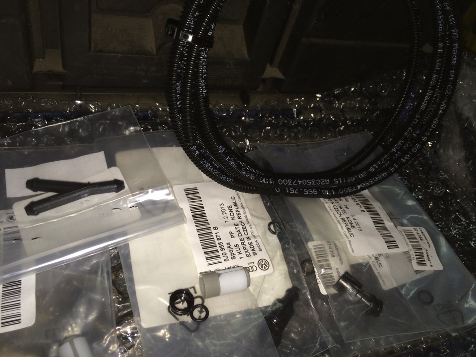 Далее надо было разобраться с подводом трубки омывателя. Для этого были заранее куплены пара метров трубки 1J0955751D, из которых пригодилось 30 см-) (останется про запас).