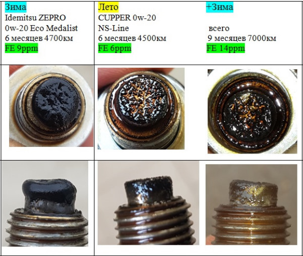 3) высокий износ 0W-20 с молибденом (11 месяцев, сожжено 980л топлива), количество продуктов износа:
