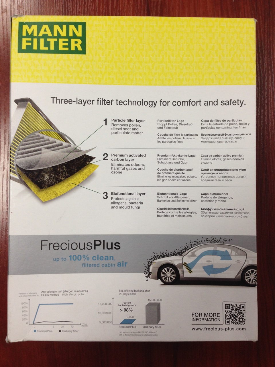 FP фильтрует частицы pm2.5-90%, и pm10-99.9%, учитывая это и налет-разве это грязь? может это как раз тогда хим. обработка угля в фильтре которая выделяется в итоге? представитель Манна сказал что ничего не должно выделяться, тогда фильтр не пройдет никакие нормативы… что думаете? я постараюсь еще допиться ответа от представителя, но он пока перестал отвечать. сам наверно не знает.