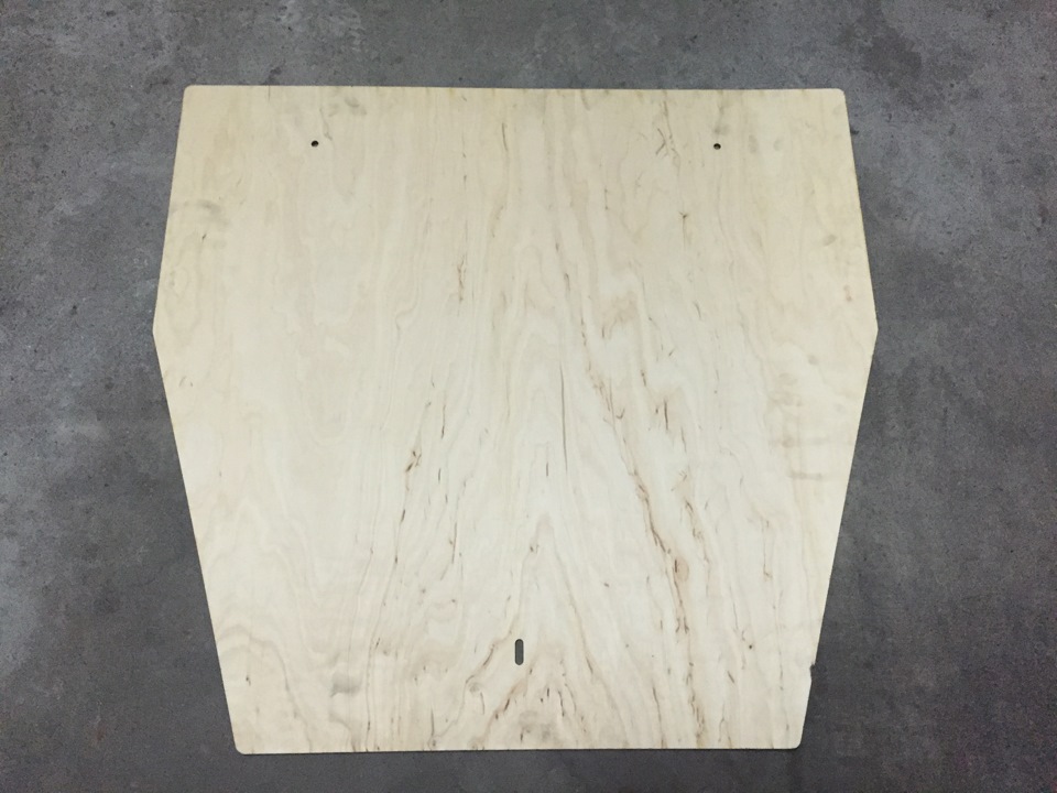 Для изготовления прототипа в качестве материала выбрал фанеру. Из нее легко и недорого по моему чертежу изготовили "защиту" в натуральную величину для примерки. Чтобы оставалось свободное расстояние от защиты до картера и прочих элементов двигателя, спереди использовал проставки 50мм, сзади — 25мм. Все стало просто идеально. Моему восторгу не было предела!