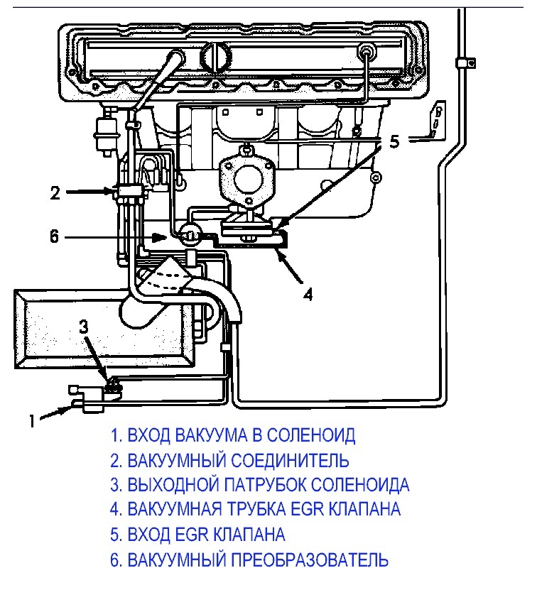 Находится между соленоидом клапана системы EGR и самим клапаном.