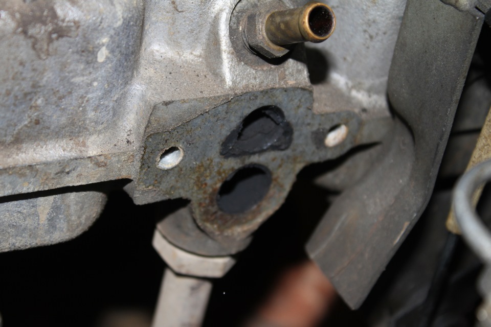 Остаётся два незаглушенных отверстия на штуцере на впускном коллекторе. Их я заглушил резиновыми уголками со снятых трубок и кровельными саморезами с резиновыми прокладками.
