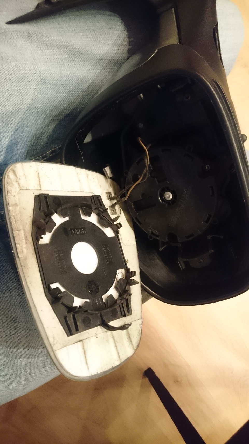 Так же еще с покупки не работал подогрев водительского зеркала заднего вида. Решено было все сделать самому, благо инфы уже много, у меня как и у всех перегорели провода в перегибе между подколенной частью и основной.