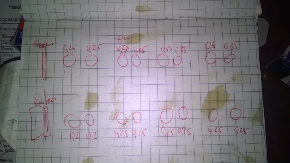 На впускных 0,3 и опять в сторону уменьшения. На все измерения ушло примерно 0,5 метра толканий автомобиля.