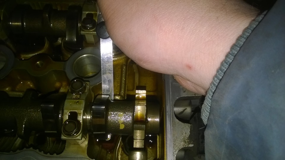 Поставил вторую передачу и начал потихоньку толкать машину назад до того момента пока какой ни будь из кулачков распредвала не будет направлен против толкателей.