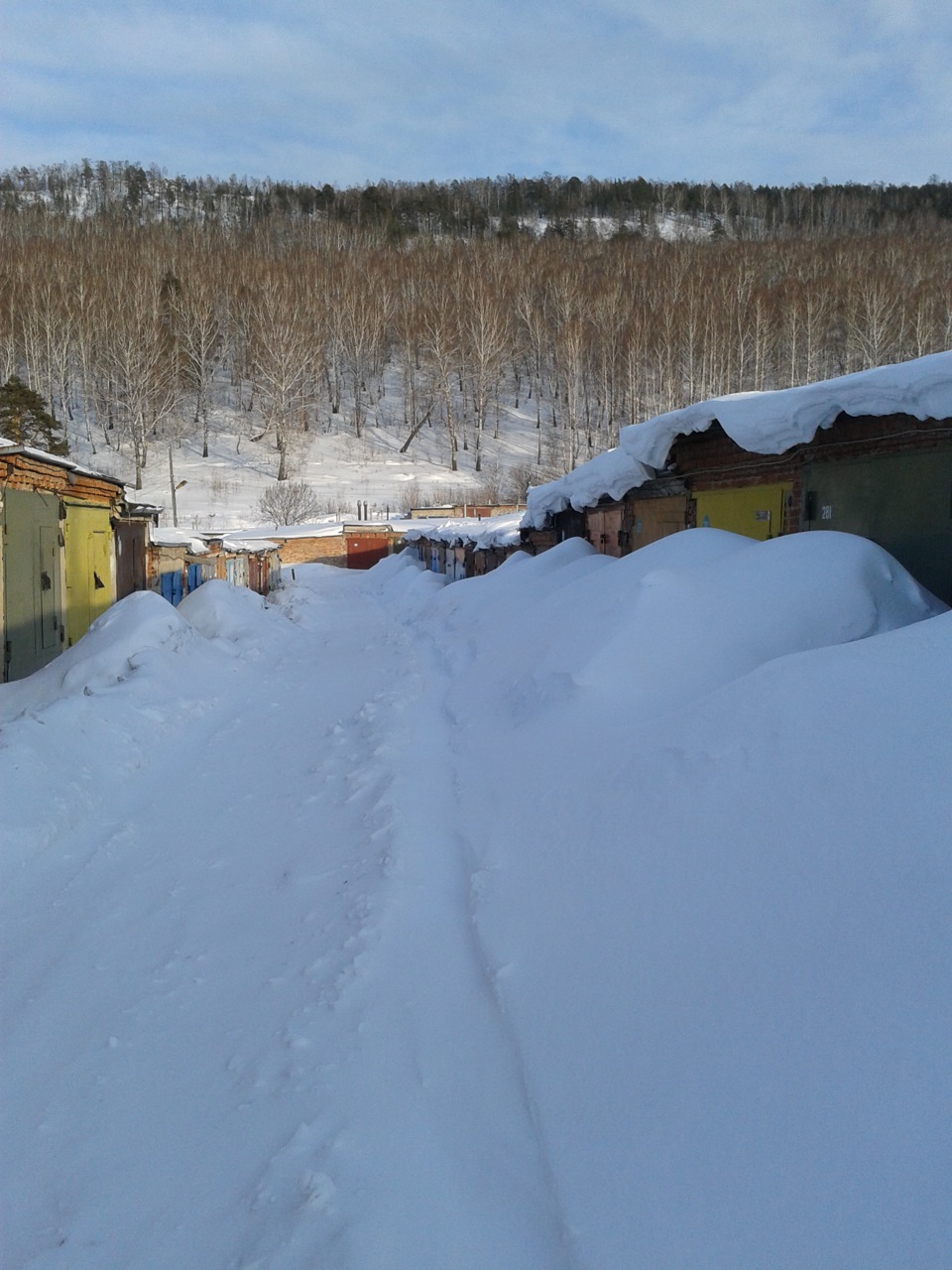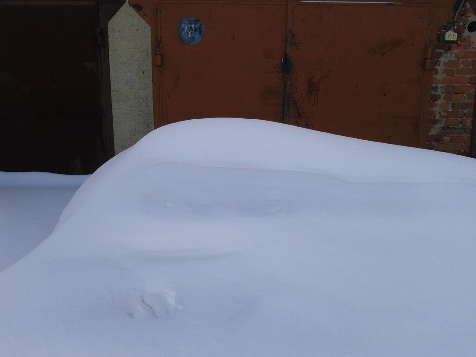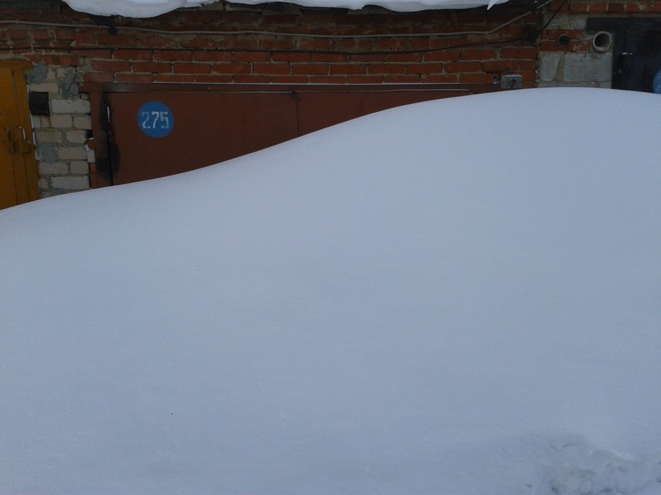 Да снега в этом году прилично. Боюсь только когда таять начнет в гараж будет не попасть и из него не выехать.Прийдется машине пережидать это время в "своем доме" (гараже).Прошлой весной снега было раза в три меньше, но засел я как-то на час, провалился на "брюхо", потом выкапывал весь снег из под нее и пару метров впереди. А теперь вообще эту пору прийдется пережидать.