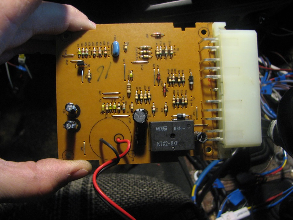 6. осталось проверить сам БУТ: открыл его, посмотрел на элементы — все в норме, паленых нет, емкости не вздуты, на плате только одно реле — сначала подумал, что это таймер на обогрев заднего стекла, но когда пощелкал включением обогрева, оказалось, что щелчки идут от релюх под рулевой колонкой. хм — а чо тогда это такое и почему оно молчит?
