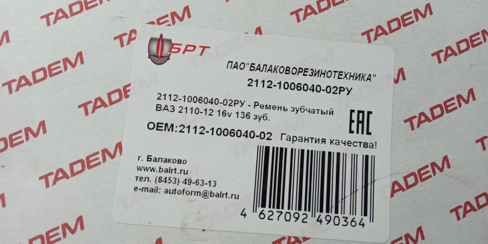 Купил сегодня ремень ГРМ Балаково (БРТ). Считаю это нормальным.