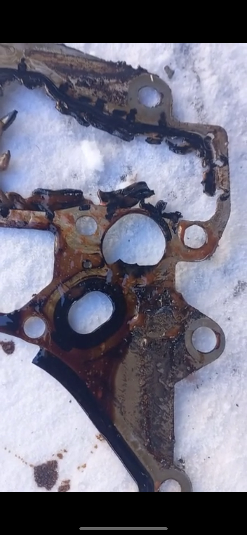Сегодня менял прокладки теплообменника, после его шлифовки, немного поведён был, начал продувать компрессором радиатор теплообменника и из антифризной секции вылетил кусок резины, итог хана прокладке маслонасоса пробег 202000.