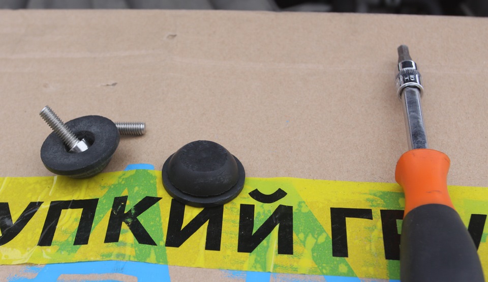 Резинки 16557-ED500, что вставляются в рессивер, решили не покупать — они стоят по 300 рублей за штуку, так что просто подобрали в магазине автокрепежа подходящую заглушку от ВАЗовской машины.