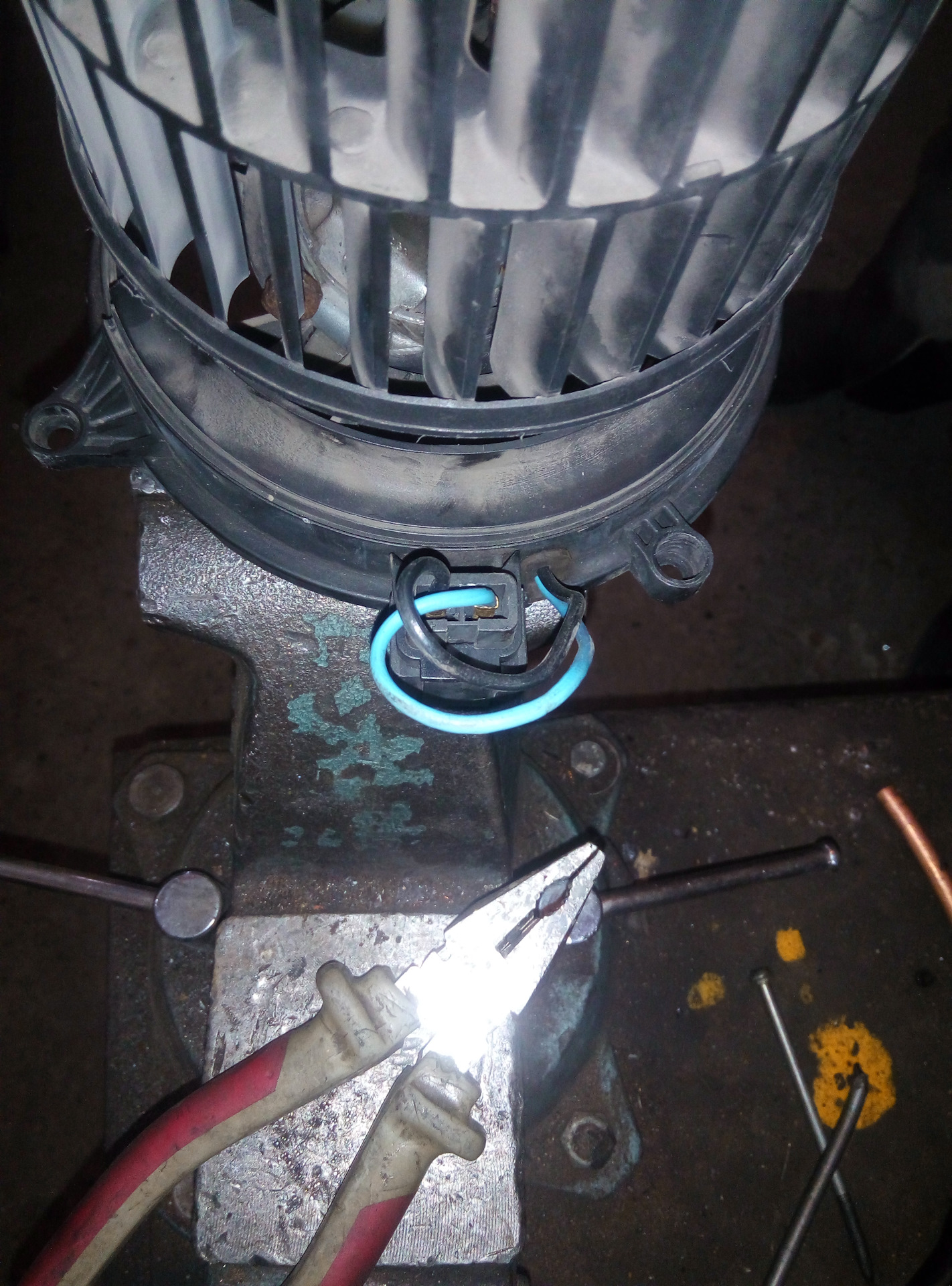 Щас бы вспомнить, куда крутит) провода да, это фото уже второй попытки, как раз фотал до разборки, чтобы не перепутать. Там если перепутаешь — сразу почувствуешь, что не дует совсем