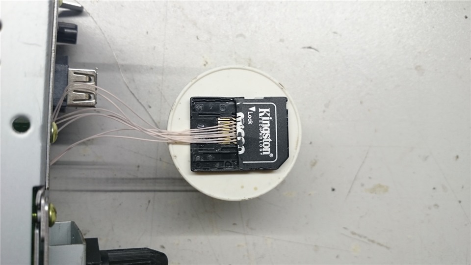 Для восстановления работы MyLinka cобрал "паучка" из переходника miniSD -> SD и распаял его на плату.