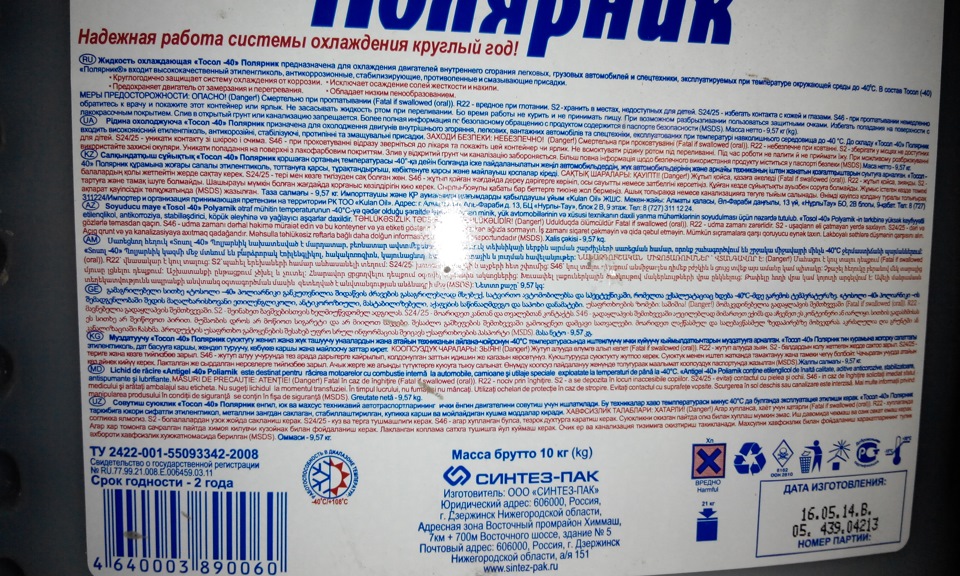 Для начала вспомним, что такое антифриз, да по сути и составу это и есть тот самый старый, добрый тосол, просто название антифриз (ANTIFREEZE) в переводе незамерзающий было запатентовано, кем не знаю, да и не важно кем, главное, что наши лоханулись и не запатентовали название ТОСОЛ, потому сейчас почти все охлаждающие жидкости для систем охлаждения двигателей называют антифризом, а могли называть ТОСОЛОМ Изначально тослол был придуман и изготовлен в Институте Органической Химии в далеком 1971 году и под эту охлаждайку придумали ГОСТ 28084-89. Сейчас ТОСОЛ производят по ТУ 2422-001-55093342-2008 по этим тех условиям в состав входит этиленгликоль, обессоленная вода, антикоррозионные, стабилизирующие, противопенные и смазывающие присадки.