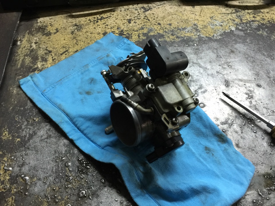 Заслонку надо снять, тогда можно будет открутить снизу клапан. Чистили спец. жидкостью для очистки карбюратора, бензином под давлением и ветошью.
