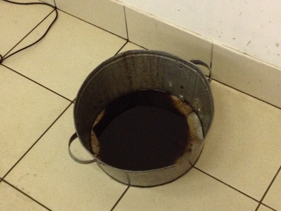 Там масло не только моё, выше писала об этом. Моё красного цвета, видела его на полу. А тут, в тазике, смешано с густым черным маслом с другой машины.