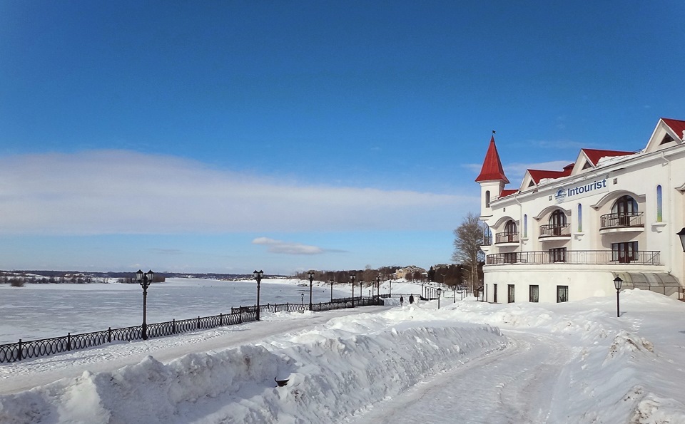 Дорога к Угличу идет через Калязин, знаменитый своей затопленной колокольней. Летом торчащее из воды строение выглядит впечатляющее, но есть как минимум один повод посетить это место зимой, когда на реке лед…