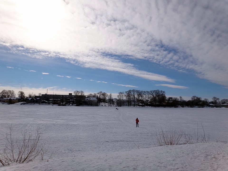 Лучше пешком, март уже как-никак. Местами трещины на льду. Людей-то выдерживает, а вот автомобиль…