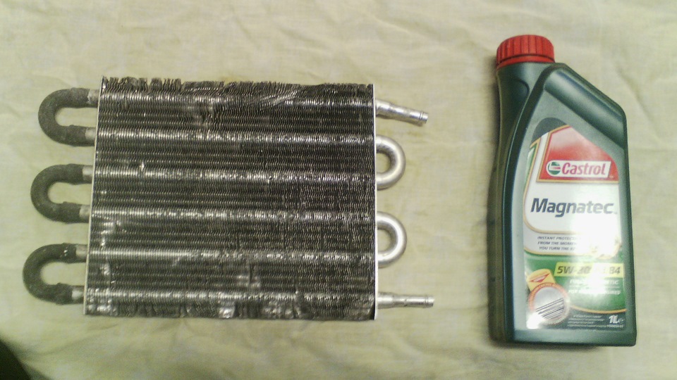 это универсальный радиатор дополнительного охлаждения акпп. стоит новый порядка 3000 рублей. мне подгоняли такой бесплатно и я ставил на сенатора. мне он не помог, т.к. накрылся маслонасос. но я ставил не в разрыв, а вообще отдельно как основной радиатор акпп. потому что часто в родном радиаторе начинает протекать перегородка между контурами масла и антифриза.