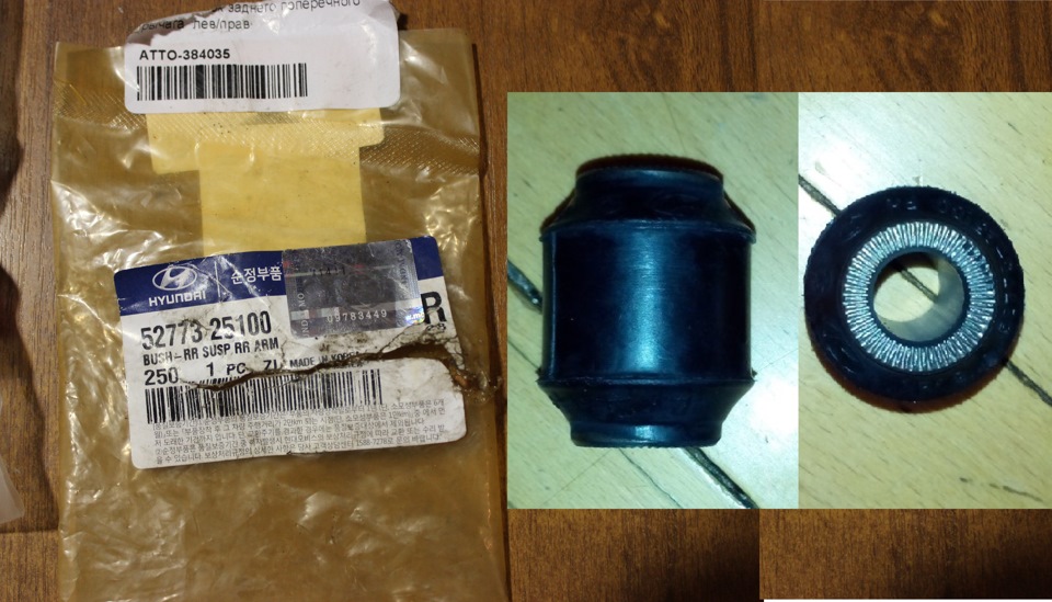 Из известных причин шимми, устранил всё кроме замены сайлентов в панаре. На вид они казались вполне живыми, без трещин и явного отслоения резины от втулки. Поэтому не менял до сегодняшнего дня. Вытянув из рычага — понял, что надо было поменять ещё год назад. Сайлент за 235 тыс км задубел и виден явно неравномерный износ и уплотнение. Известно что оригинальных в природе нет. Купил от акцента — те которые поплотнее. В диаметре они оказались великоваты, буквально полтора миллиметра в отличии от родных, но не лезет и всё тут. Снял лишнее на точиле, получил 29 мм с плавным увеличением к краям сайлентблока. Запресовал доработку почти без проблем! Пока рано говорить о победе над шимми, но проехав на "той самой" скорости по тем самым дорогам, где он гарантированно появлялся в этот раз ни разу не поймал расколбас.