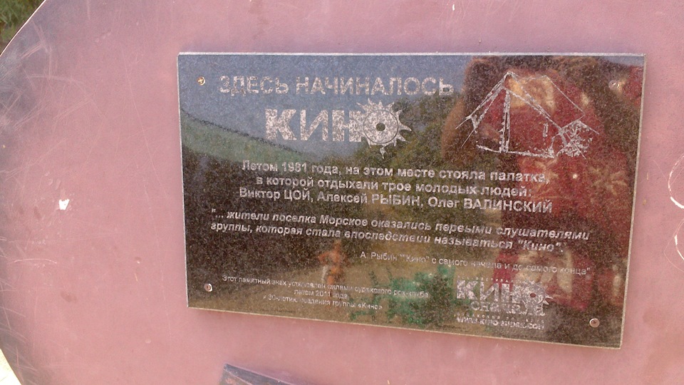 Потом гулял по лагерю, есть места ещё более шикарные, но как правило занято. На территории чисто, туалеты и душевые в порядке, работают несколько кафешек, вечером можно сходить в кинотеатр в Солнечный камень. В лагере тихо и спокойно, шумных/буйных компаний не было, с семьёй, с детьми в самый раз. В этот день в посёлке Морское был концерт, посвящённый годовщине гибели Виктора Цоя. Двадцать пять лет уже прошло! Концерт был возле памятника группе Кино. Оказалось, что Морское — это место, где группа Кино дала свой первый концерт. Я и не знал об этом ранее, хотя был фанатом Кино в юности.
