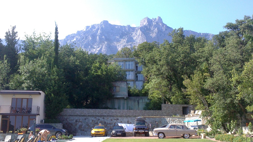 План был такой. Несколько дней отдыхаем в Ялте, пару-тройку дней с палаткой на побережье, несколько дней в Коктебеле и домой. Дорога туда прошла довольно легко, т.к. все были в предвкушении. В 00:15 подъехали к парому, в 02:30 съехали с него и стали искать место для второго ночлега. На ночлег встали на крупной заправке, не доезжая до Феодосии. Поспав несколько часов и позавтракав на заправке поехали в Ялту, в Гаспру, в забронированный отель. Ехали по дороге вдоль побережья. Серпантины конечно немного напрягали, освоил торможение автоматической коробкой, раньше не пользовался этим способом. Но виды по этой дороге, я вам скажу, просто неописуемые. Отель у нас тоже был с шикарными видами, на море, Ай-Петри и можжевеловый лес.