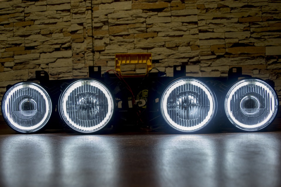Единственное скажу что для "ангельских глазок" пришлось сделать вот такие кругляки из алюминия. Потому что глазки попросту не влезали к покрашенным отражателям ближнего. Можно было конечно просто выкинуть отражатели и покрасить внутрян фары, но так как то не комильфо.)