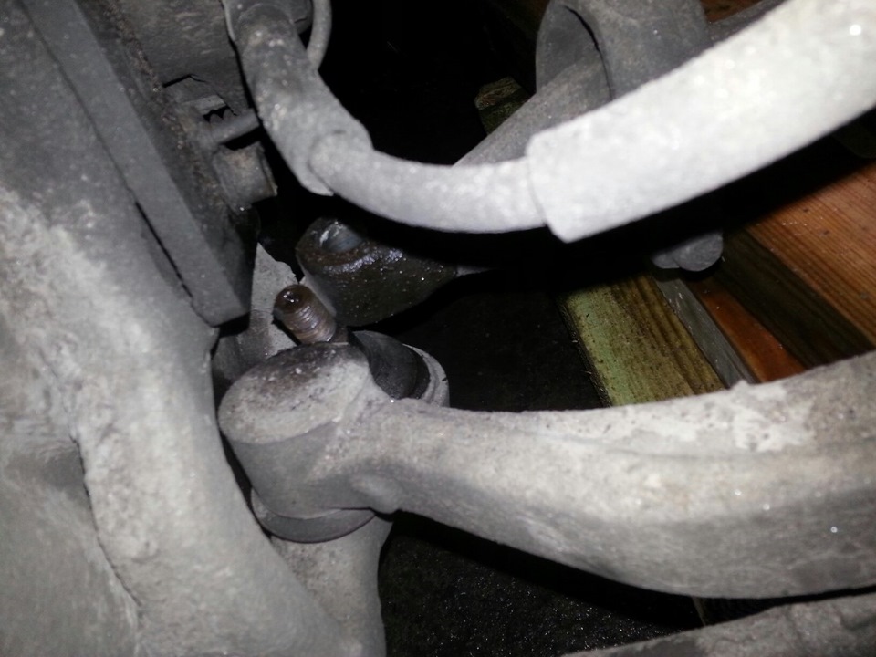 Далее подводим кулак так чтоб новая шаровая примерно смотрела на посадочное место в рычагу и подымаем машину домкратом. Далее закручиваем гайку.