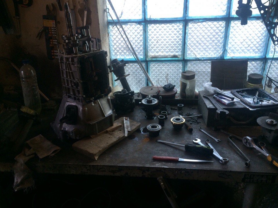 вчера поехал на рынок прикупил ещё одну шестерню пятой передачи (уже третью по счету!), ну а сегодня таки взялся за переборку… в этот раз не сильно много разбирать нужно было, по этому решил сам все сделать, а то поехать к тому что перебирал — он вообще афигеет))) разобрал всё, снял шестерню пятой, и вот чё там