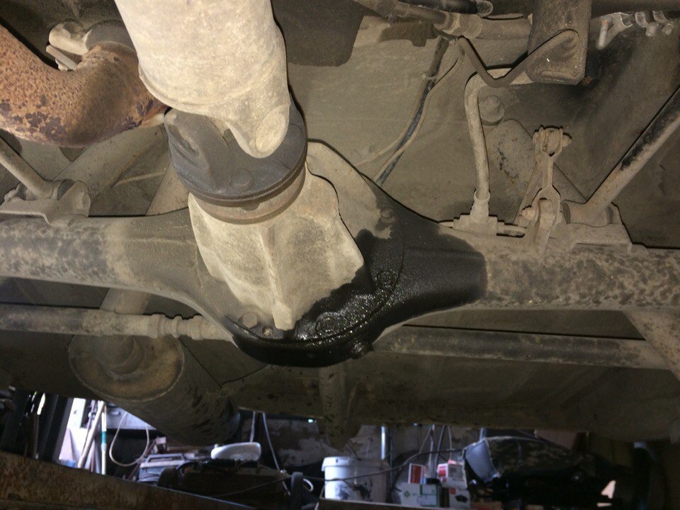 недели три назад заметил что чулок вокруг редуктора с одной стороны жирненький немного, ну думаю посмотрю потом как то… так покатался немного, к куму сьездил, потом перед тем как КПП скидывать решил глянуть как там он поживает, залез в яму и афигел, там уже не жирненькое, там капля на чулке и всё мокрое прям!