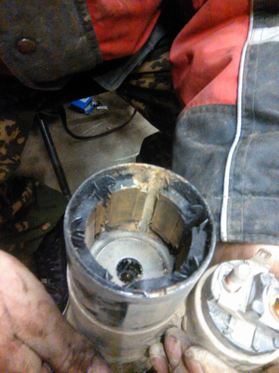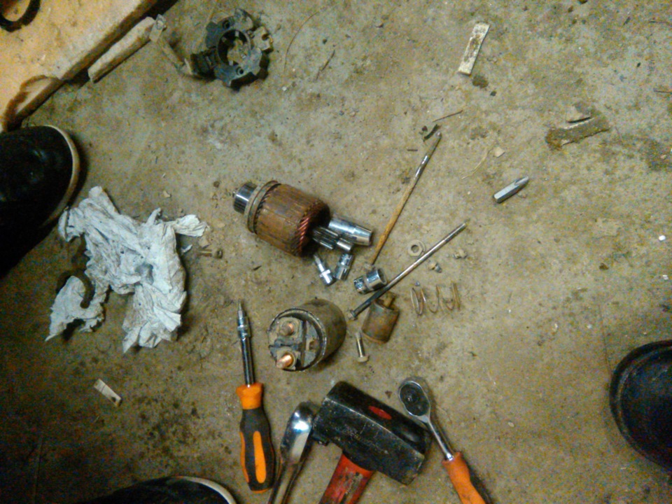 Прошло еще "поллитра пива". ;) Мишган начинает перебирать стартер. Внутренности — просто ужасны!..