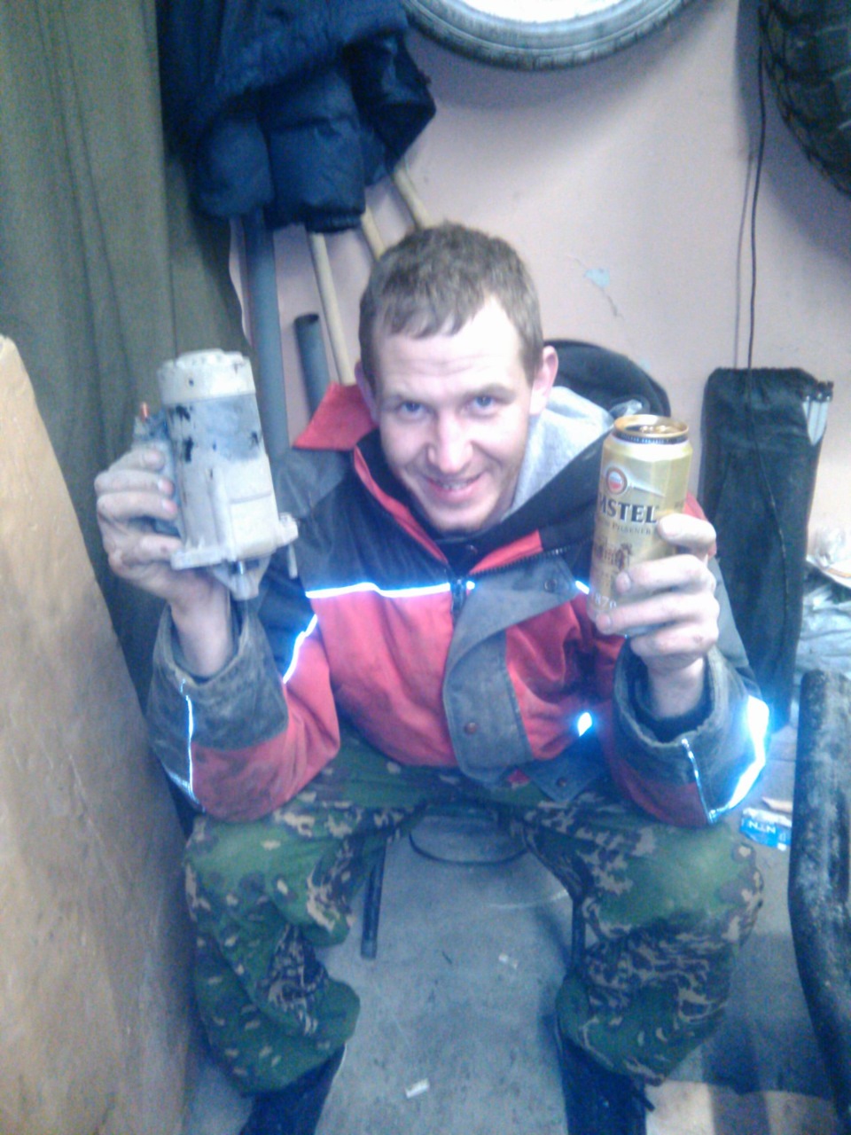 Примерно через 20 минут после опубликования объявы "дам снять стартер за деньги" — появилось двое желающих. Но не сегодня. Но за 1,5тыра. накидываю еще 250руб и говорю — сегодня! ;)))) через час, в 20:30 у меня в гараже были дружищи Мишган RBEMS и Юра FSO, с инструментом, пивом и в правильной одеже! ;) Мишган сказав "ща!" отхлебнул пива и нырнул под машину.