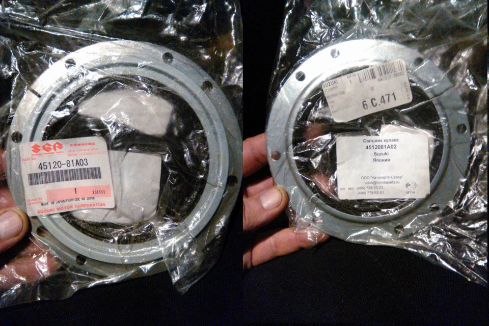 Собирая ступицы — в холодном, отапливаемом лишь одним 2х-киловаттным электрообогревателем — пришлось значительно потрудиться. Холодный металл, увеличенный ШРУС усиленных полуосей не доставлял удовольствия в легкости сборки. Сначала я, как и положено, вытер изнутри кулака всю смазку и выдернул старый сальник чулка моста. Вставил новый сальник и… удивился что он немного надорвался на внешней стороне. Оказывается на внутренней стороне чулка есть некий острый наплыв, который удерживает сальник в своем положении. Хотя, возможно это не конструктивный элемент а некое следствие работы увеличенного ШРУСа. Там вообще все как бы очень плотненько и с очень минимальными зазорами. Настолько плотненько, что стоит чуть активнее шевельнуть русом — он выдавливает шкворневые подшипники из кулака! ;)