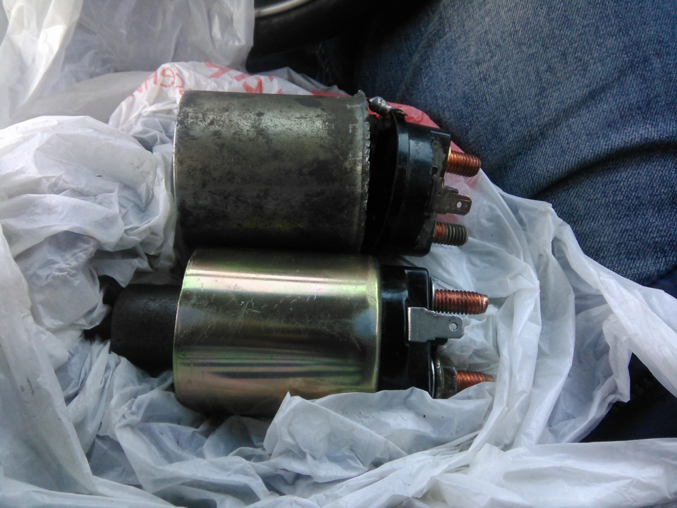 В обчем — как вы понимаете, хреном я занялся а не стеклом на следующий день. Ну в смысле не хреном а втягивающим… ;))) Поехал в адрес "Хабаровск, Оборонная, рынок, место №133", где специально обученные чуваки специализируются на именно на стартерах и генераторах. Купил нужное мне втягивающее, забрал из гаража кишки стартера и утащил все домой на балкон, профилактироваться.