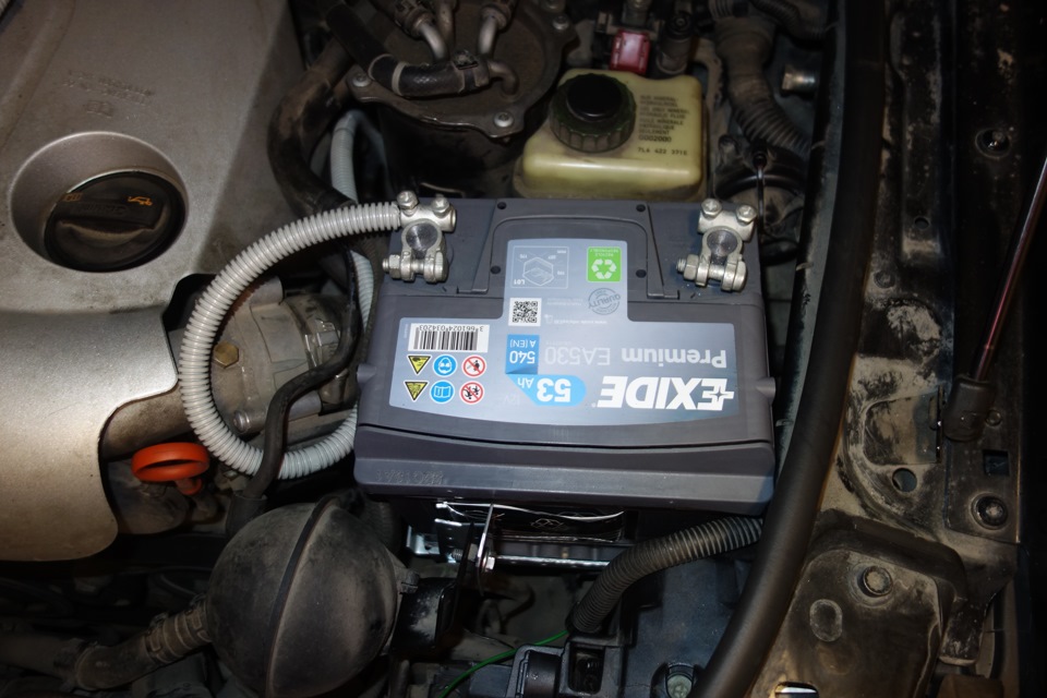1. Exide — новый, заряжен на ~90%, к моменту снятия видео без подзарядки раз 20 стартовал мотор, поэтому думаю даже около 80%. Родная полугодовалая Varta заряжена примерно на те же 80%, ибо тестам предшествовала 3-часовая поездка. Насчет ее емкости есть сомнения — на днях проверю, ибо теперь можно оставлять авто временно на внешней АКБ, поставив перемычку (на время замены штатной батареи).