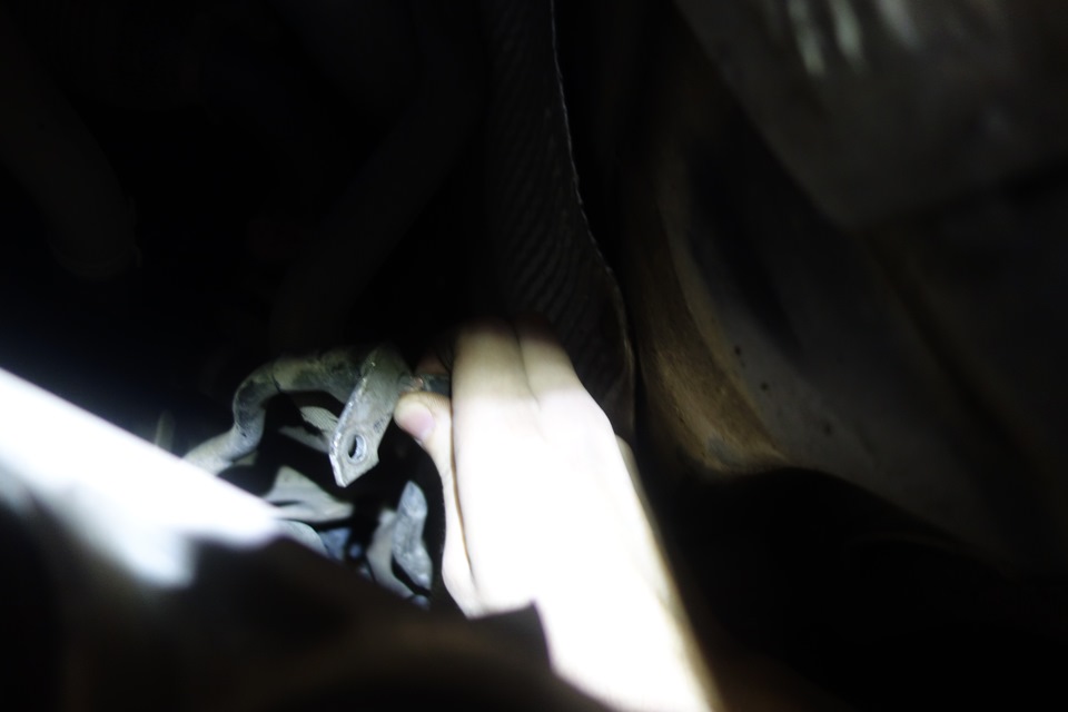 Собственно, одним из сложных моментов была прокладка нового силового плюса к стартеру вдоль имеющегося установленного с завода. Проблема заключалась в затрудненном доступе к стартеру — единственный возможный вариант к нему подобраться — это просунуть руку между стабилизатором устойчивости и прочими балками спереди, сняв защиту мотора и АКПП.