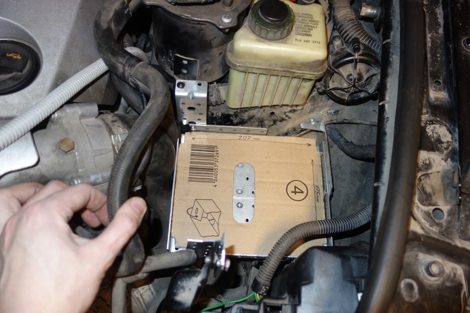 Выводится в подкапотное пространство довольно легко. Тут же были сделаны первые попытки запуска с внешней АКБ: