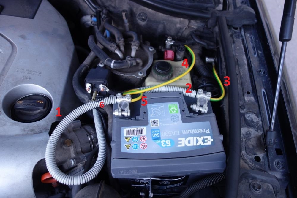 Замечу, что на всех Q7 от батареи до стартера идут куски провода сечением 50мм2, и 20-см огрызок 35мм2 провода, соединяющего стартер и генератор. Ну, надо же было где-то сэкономить… Справедливости ради, токи зарядки там до 180А, а с ними легко справится и 25мм2 провод, но не суть.